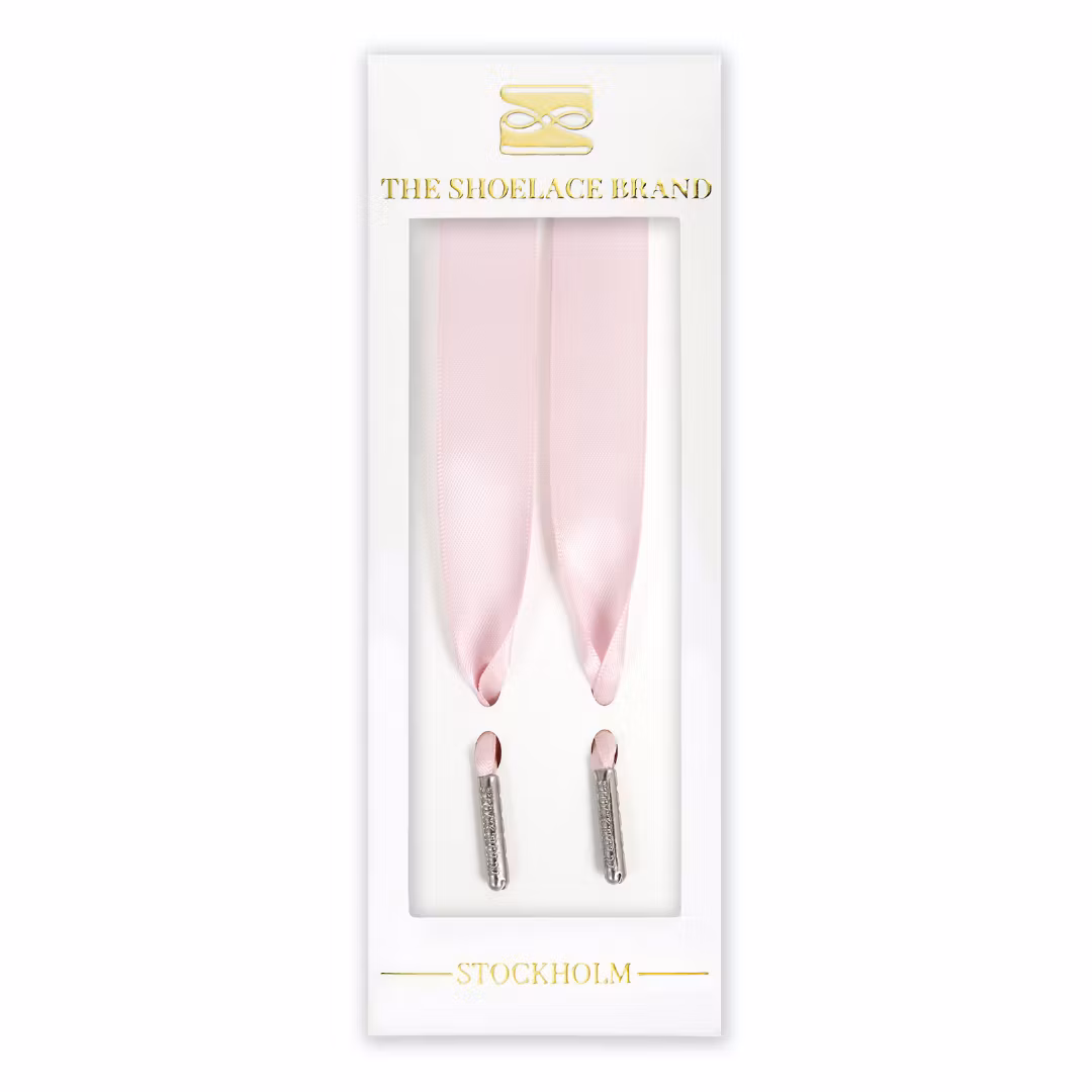 Dessa ljusrosa skosnören i siden har exklusiva metalltippar i silver, ingraverade med "Stockholm".