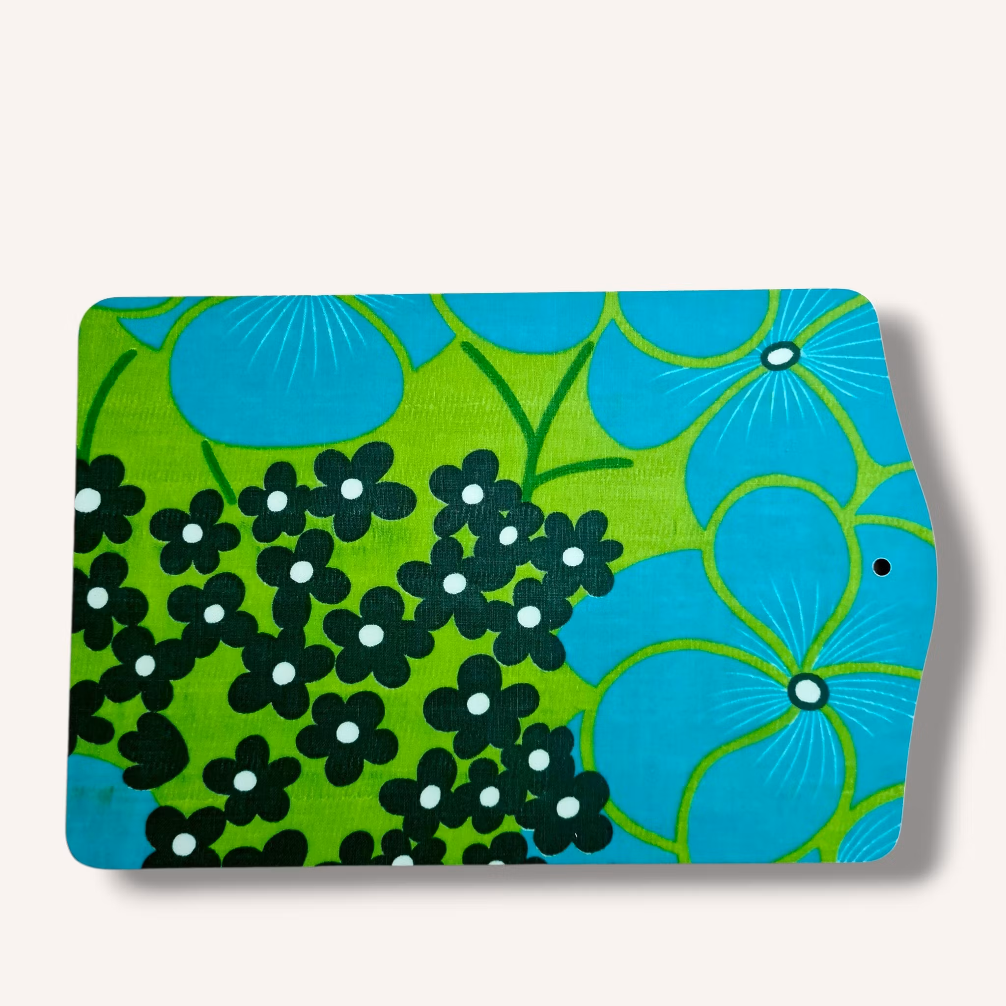 Grön skärbräda med blommönster i olika gröna och turkosa nyanser.