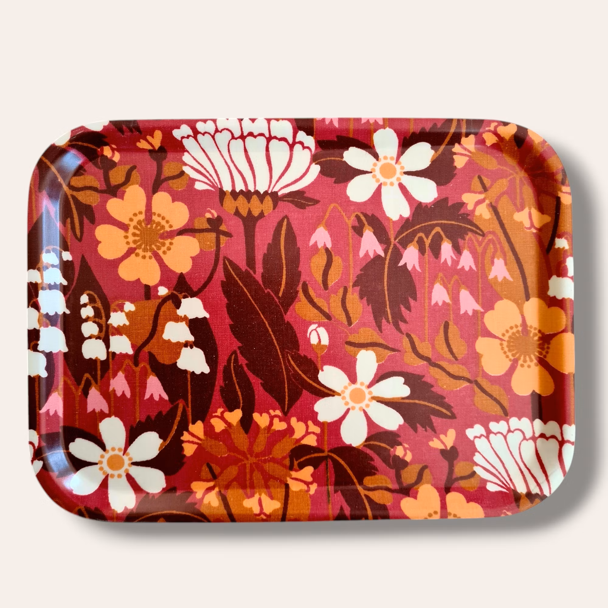 RETROBRICKA Produkten är tyvärr slut i lager. :( Retrobricka i gammelrosa med blommor.Tillverkad av återvunnet påslakan och finaste björkfanér, tillverkad i Småland.Storlek 20 x 27 cm