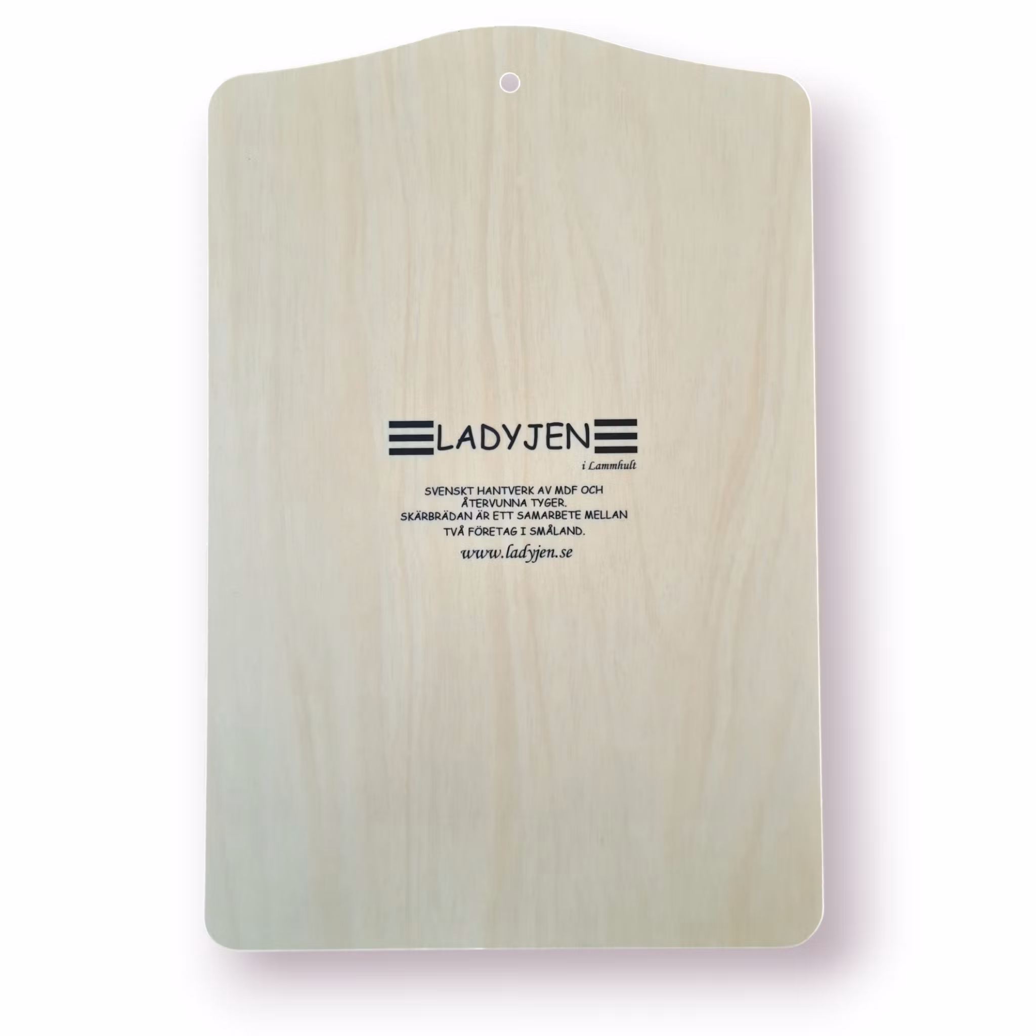 Skötsel: Skärbrädan får inte blötläggas utan torkas av med en fuktig trasa, kan alltså inte diskas i diskmaskin. Den kan även användas som grytunderlägg.