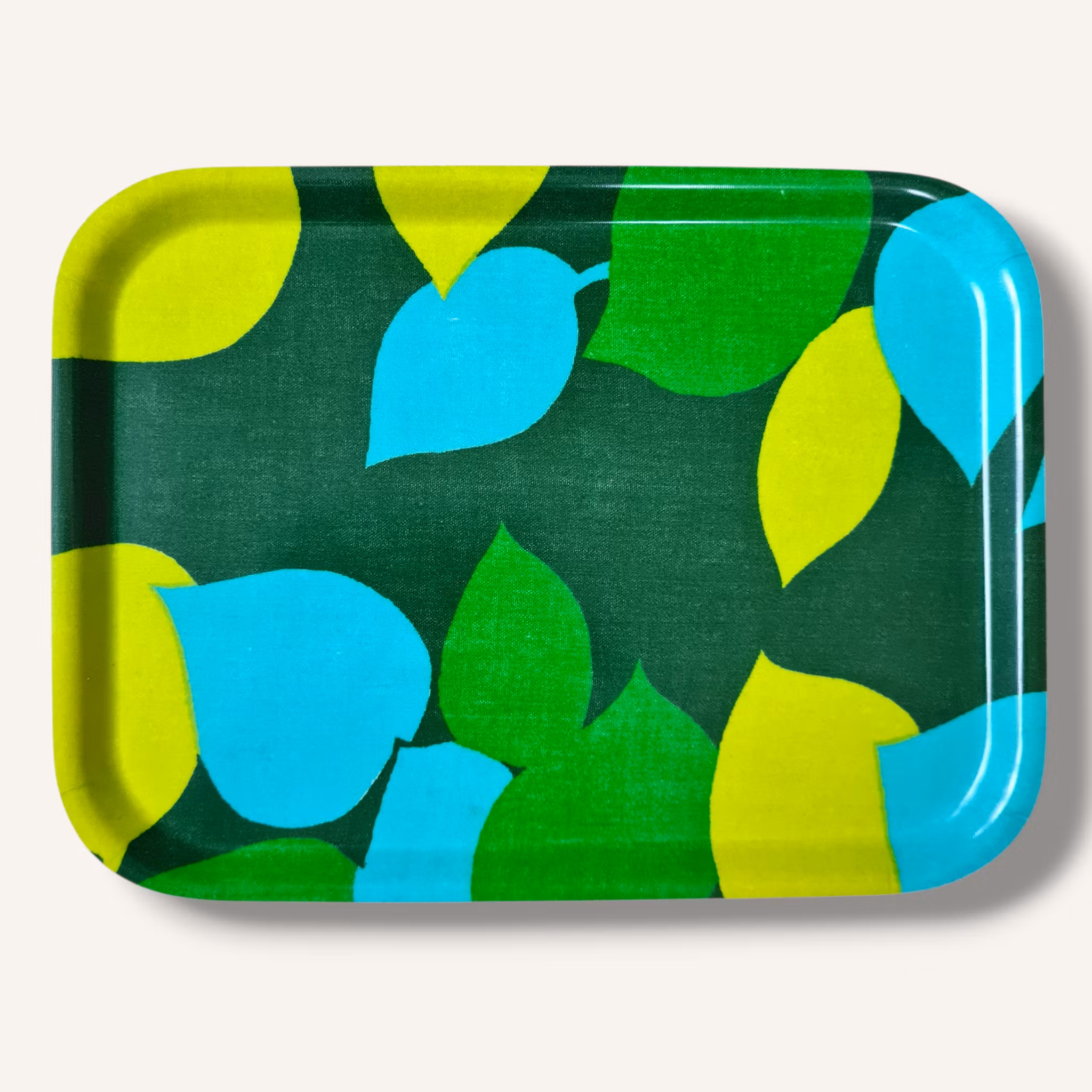 RETROBRICKA I lager. 0 kr 200 kr Retrobricka med blad i turkost och olika gröna nyanser.Tillverkad av återvunnet påslakan och finaste björkfanér, tillverkad i Småland.Storlek 20 x 27 cm